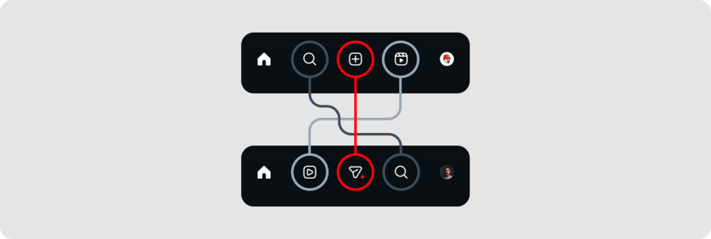 Instagram’ın son navbar düzenlemesi de bunu açık biçimde göstermekte. Basit bir ikon yerleşimiden ziyade kullanıcı davranışını yönlendiren; ergonomi, içerik stratejisi ve sosyal etkileşim dinamiklerini bir arada ele alan daha geniş bir yaklaşım.