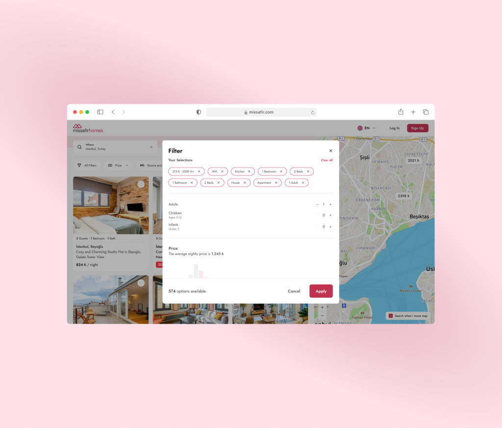 Belirlenen sorunlar doğrultusunda arama ve filtreleme süreçleri sadeleştirildi, kart yapıları daha okunabilir hâle getirildi ve genel bilgi mimarisi kullanıcı odaklı olacak şekilde güçlendirildi. Bu sayede kullanıcıların doğru ilanlara daha hızlı ulaşabildiği, daha akıcı bir konaklama deneyimi sağlandı.